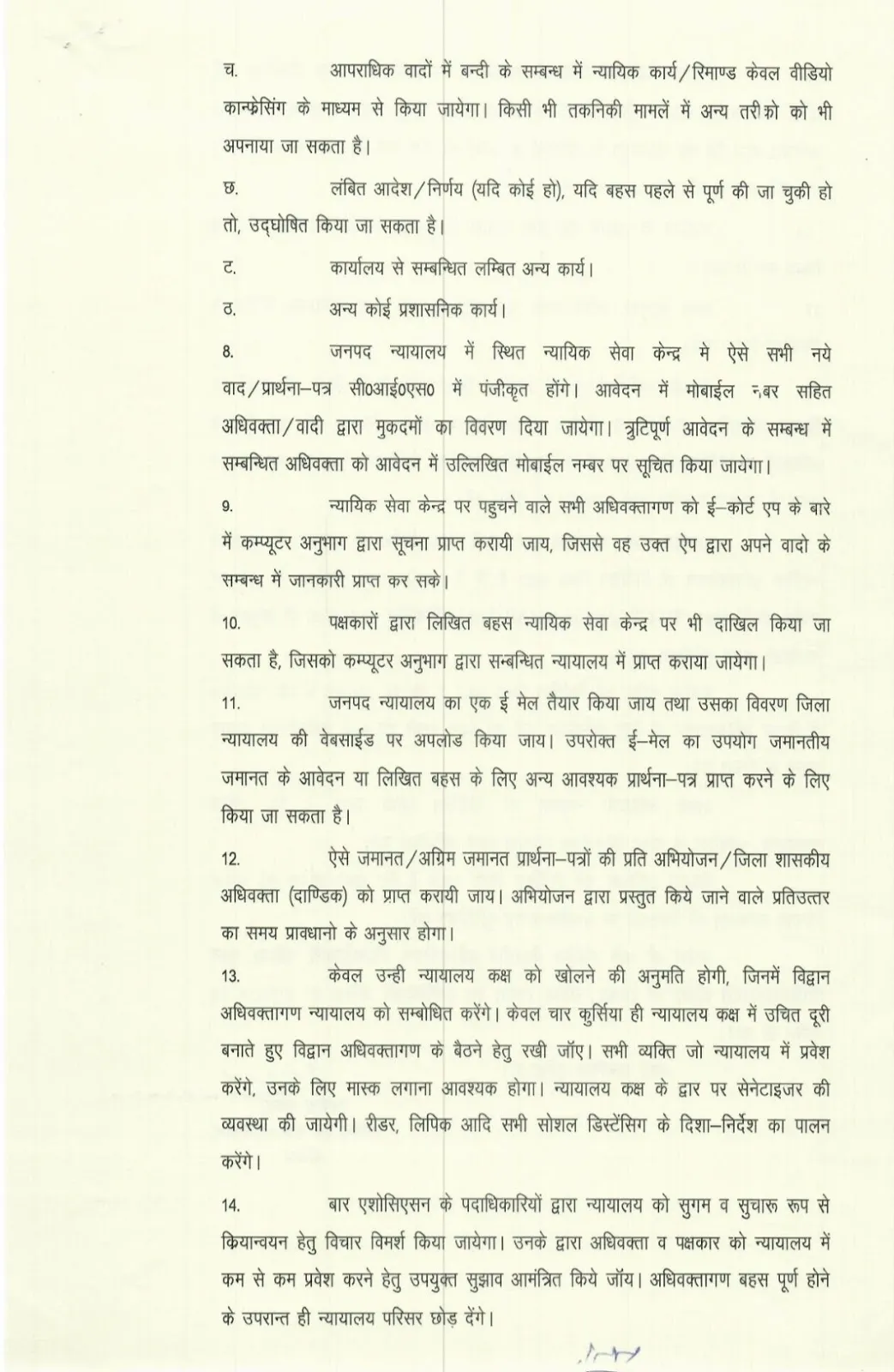 बलिया। 8 मई से जिले में न्यायिक कार्य सुचारू रूप से शुरू हो जाएंगे। हालांकि न्यायालय व परिसर में प्रवेश करने वाले सभी को थर्मल स्क्रीनिंग से गुजरना होगा। न्यायालय कार्य को सुचारू रूप से चालू करने के लिए जिला जज गजेन्द्र कुमार ने आदेश जारी किया है।