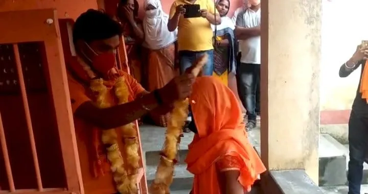 रेवती, बलिया। जिस दिन से चला हूं मेरी मंजिल पर नजर है, आंखों ने कभी मील का पत्थर नहीं देखा....। बशीर बद्र की यह पंक्ति उस प्रेमिका पर सटीक बैठती है, जो अपने मंजिल पाने के लिए बात नहीं बनी तो सहतवार थाने पर दस्तक दी। फिर उसका प्रेमी हवालात जाने वाला था, उससे पहले संभ्रांत व्यक्तियों की उपस्थिति में पंचायत हुई और प्रेमी-प्रेमिका ने सहतवार थाना परिसर में स्थित बजरंगबली के मंदिर में विद्वान पंडितों के मंत्रोच्चारण के बीच जन्म-जन्मान्तर के बंधन में बंध गए।